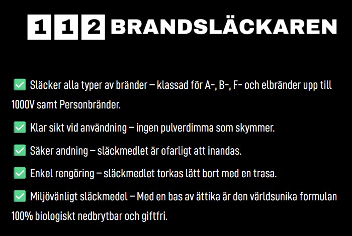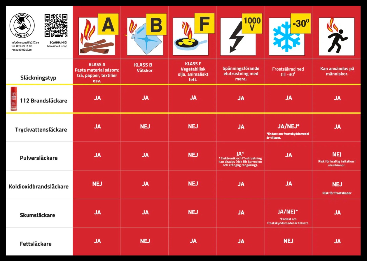 112 Brandsläckarens olika användningsområden